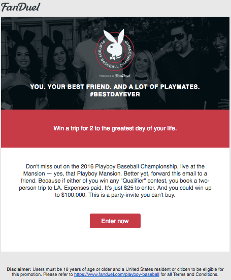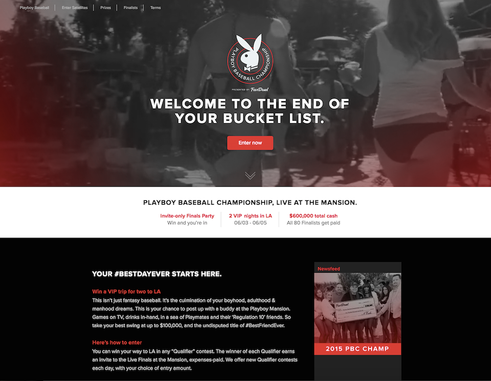 Goal: Reposition FanDuel’s Playboy Baseball Championship as once-in-a-lifetime experience vs. a big money event with nice scenery.